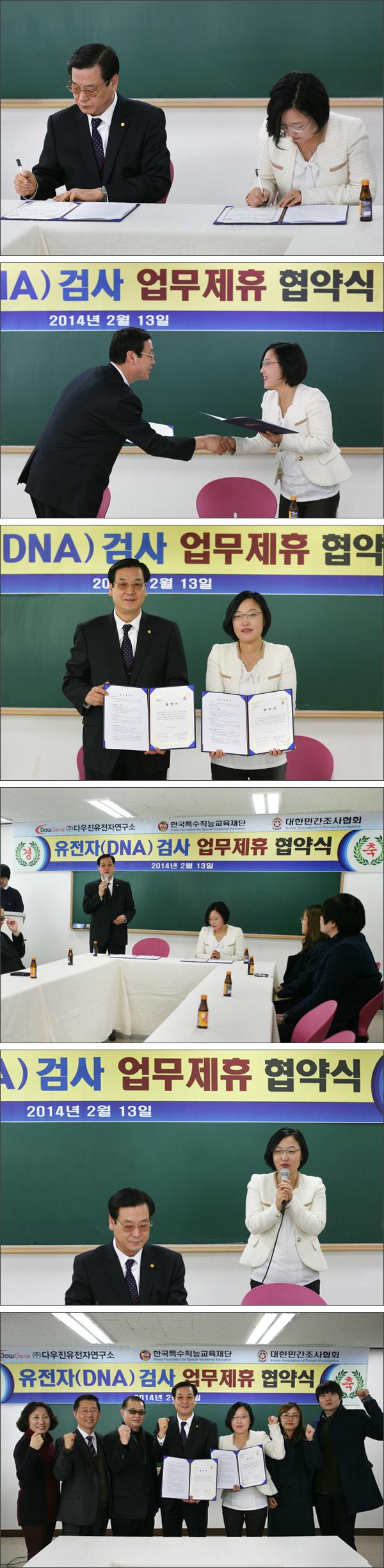 2014년 2월 13일 목요일 종로 소재 본 교육재단 회의실에서 다우진유전자연구소와 본 교육재단/PIA협회의 업무제휴 협약식이 거행되었습니다.