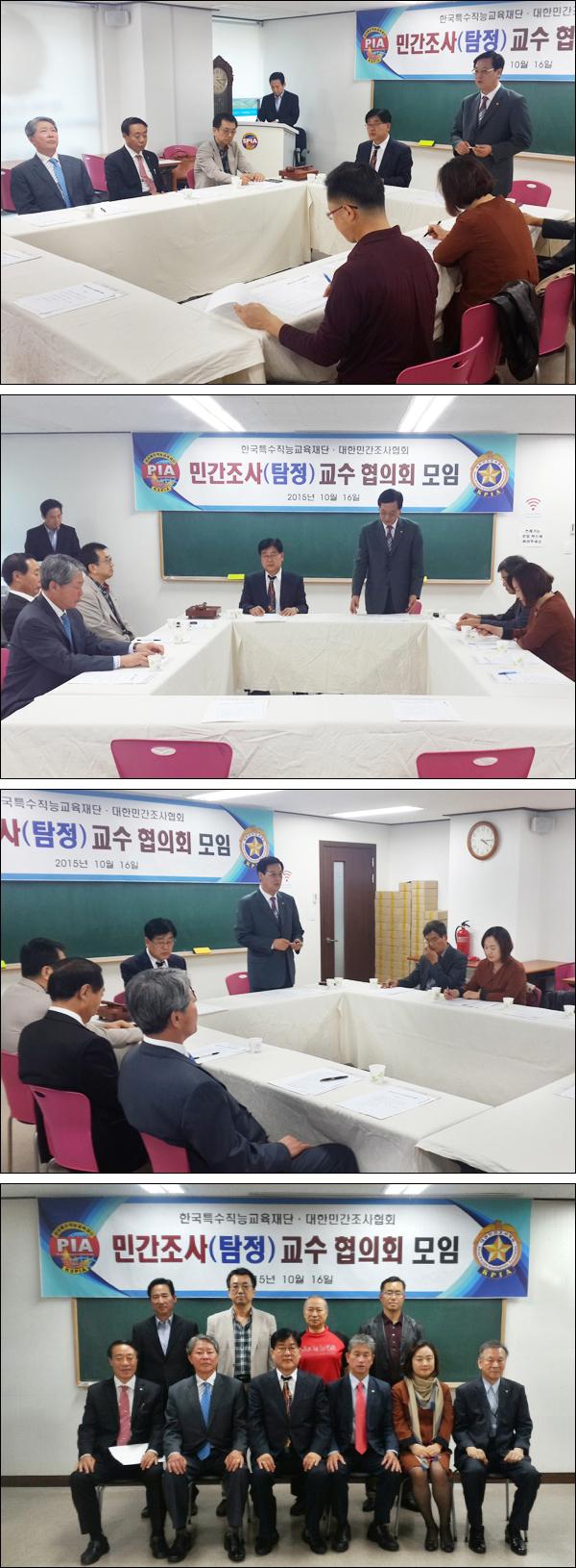 2015년 10월 16일 (금) 본 교육재단 3층 회의실에서 PIA 민간조사(탐정) 지도교수님들로 구성된 교수협의회 결성모임이 개최되었습니다.