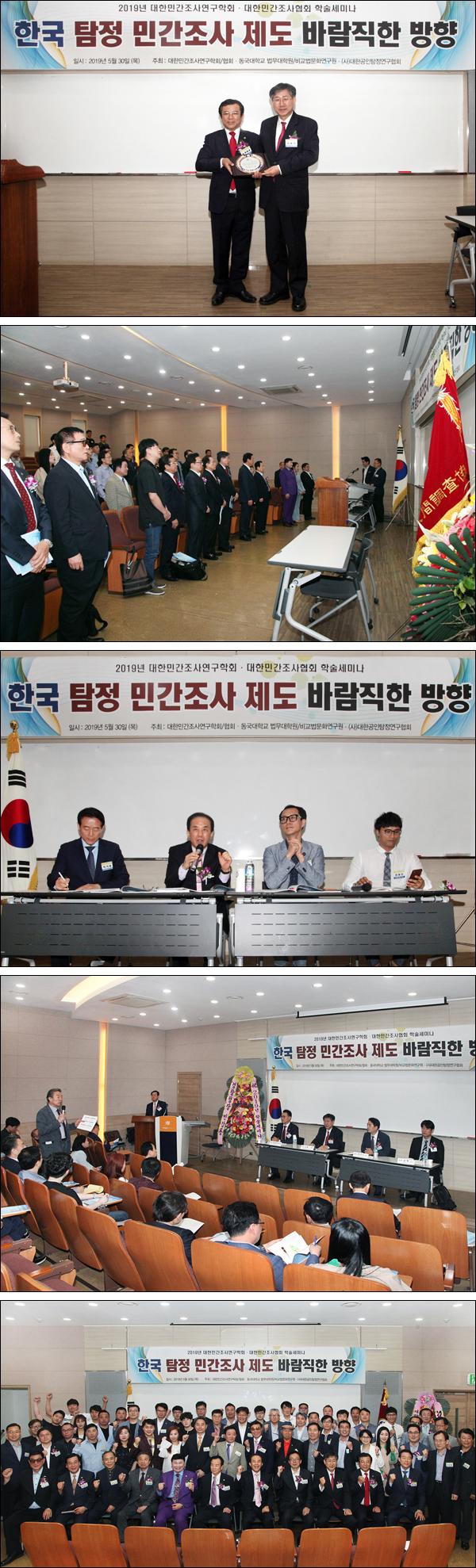 지난 5월 30일 오후 1시 대한민간조사연구학회, 대한민간조사협회 및 동국대법무대학원 공동 주관으로 “한국 탐정 민간조사 제도의 바람직한 방향” 에 관한 학술세미나가 전·현직 군·경찰 및 관련학계·업계 종사자들과 많은 내외빈이 참석한 가운데 동국대학교 문화관 2층 학명세미나실에서 개최되었습니다.