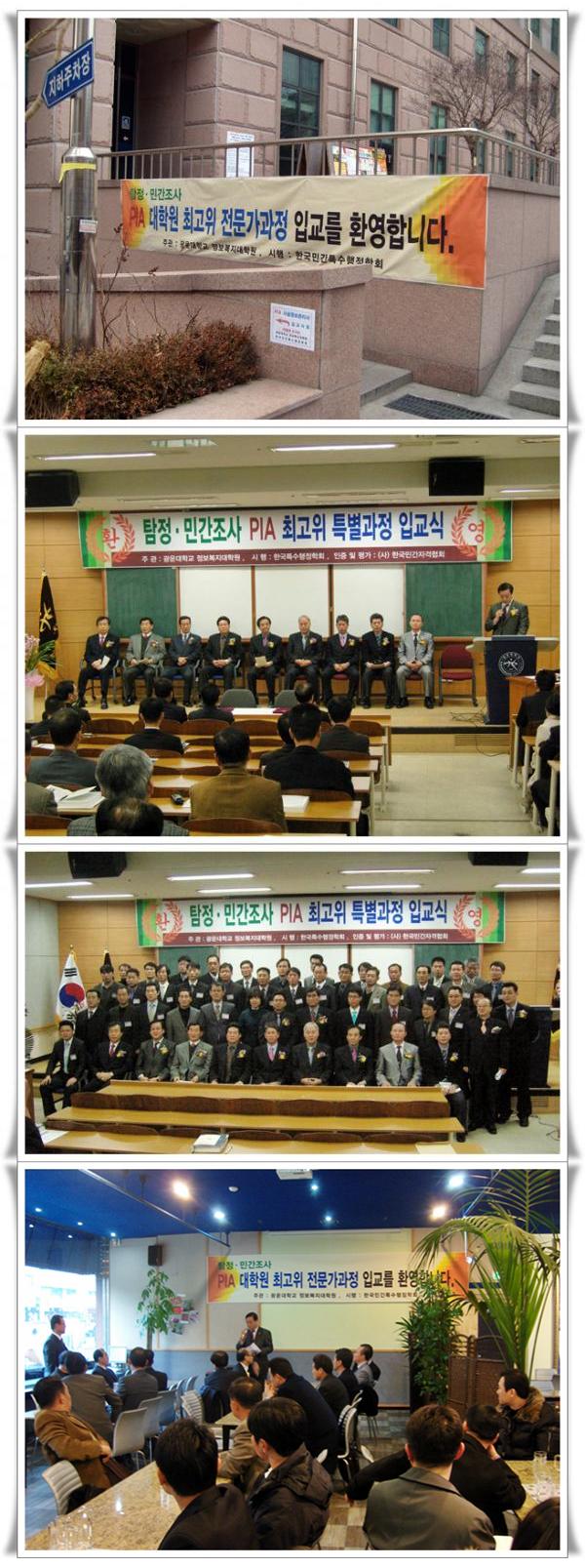 광운대학교 정보복지대학원에서 2008년 12월 27일 탐정.민간조사 PIA 자격취득을 위한 대학원 최고위 특별과정 입교식을 하였습니다.