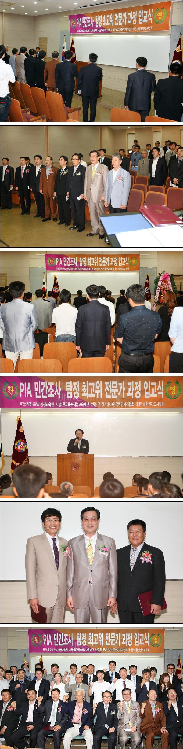 2013년 6월 21일(금) 오후 5시 동국대학교 문화관 학명세미나실에서 PIA 민간조사(탐정) 제46기 최고위 전문가과정 입교식이 성황리에 개최되었습니다. 입교하신 교육생 여러분께 축하의 말씀을 올리고 멋진 미래를 기원합니다. 참석해주신 내외빈 여러분께도 깊은 감사의 말씀을 올립니다.