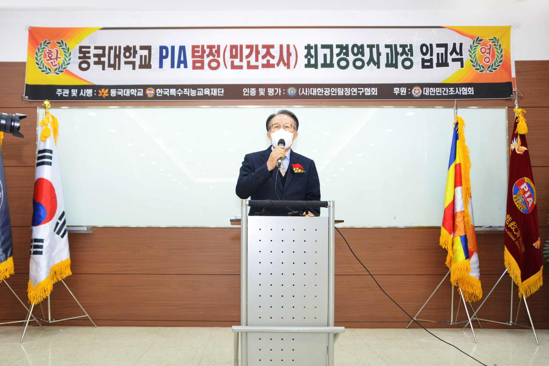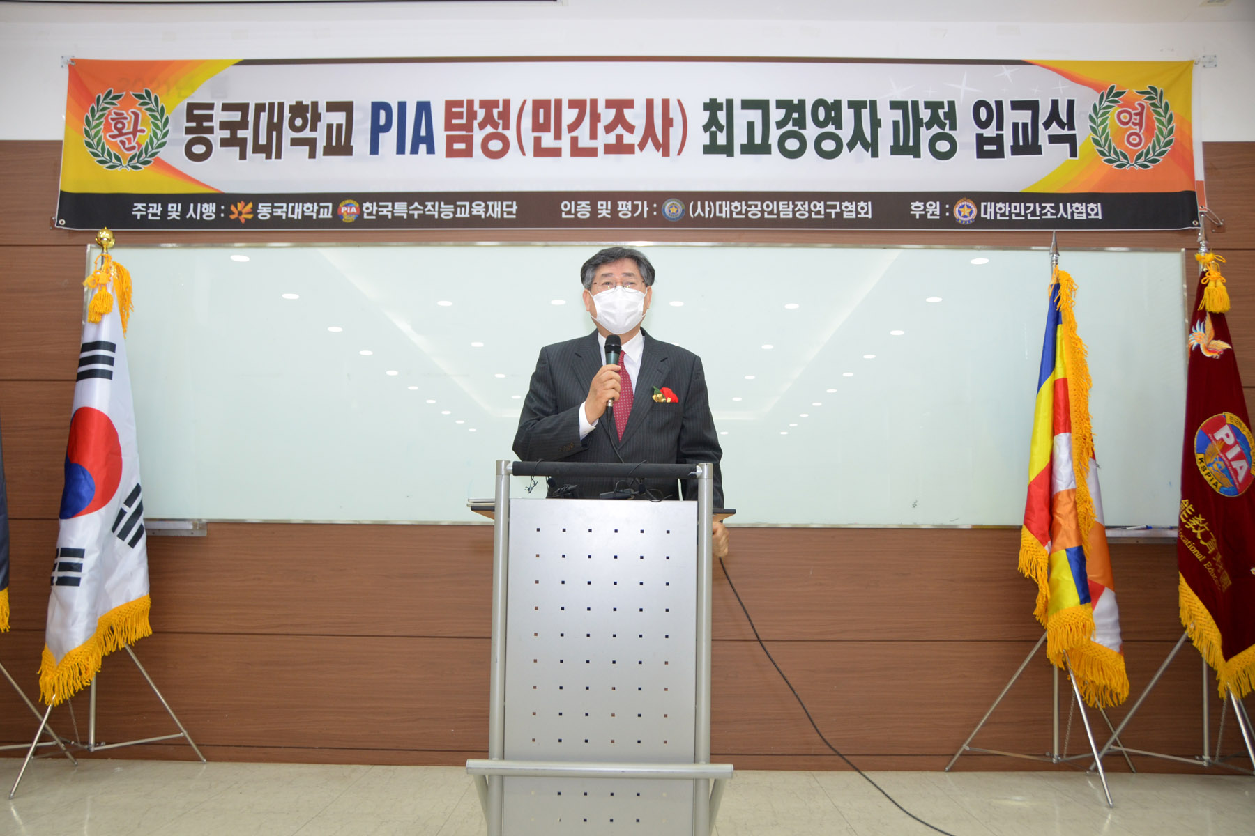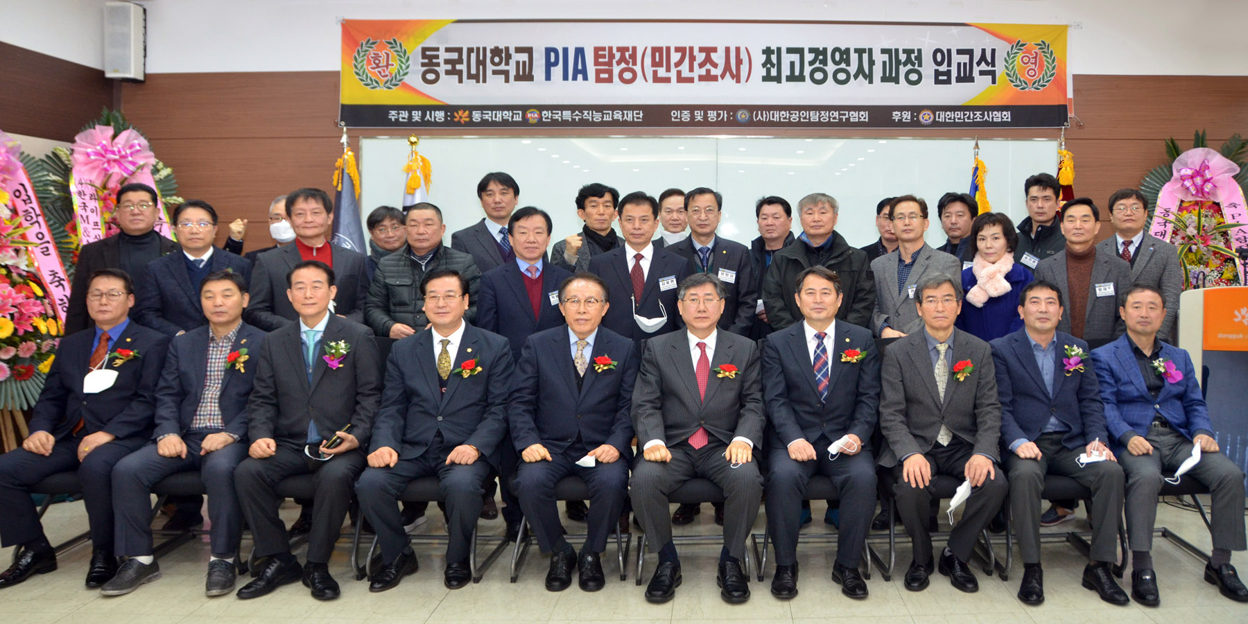 동국대학교 법무대학원(원장 강동욱)과 한국특수교육재단/한국탐정협회(회장 하금석)가 공동 주관하는 동국대 제74기 PIA사설탐정사 (Private Investigation Administrator/탐정) 최고경영자과정 입교식을 21년 2월 20일 거행하였습니다. |