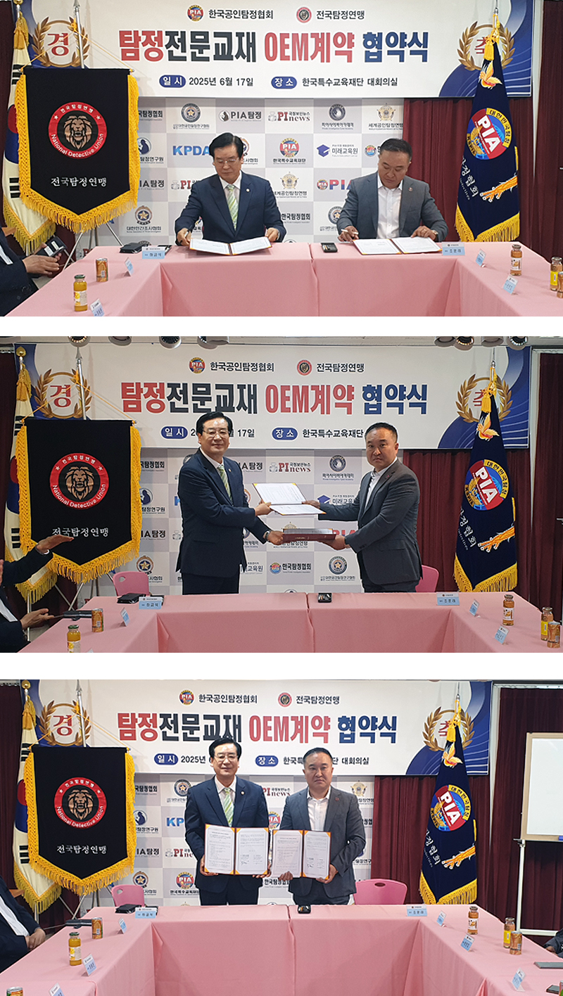 2025년 6월 17일 전국탐정연맹과 탐정전문교재 OEM계약 협약 체결 |